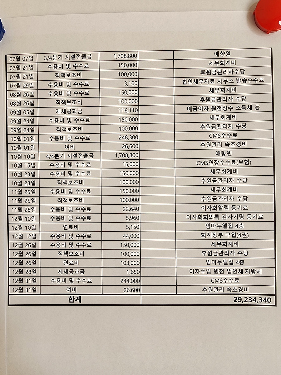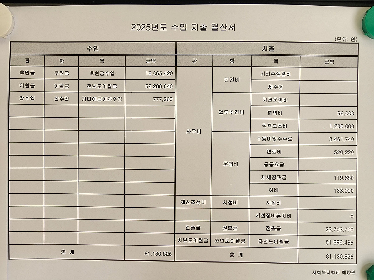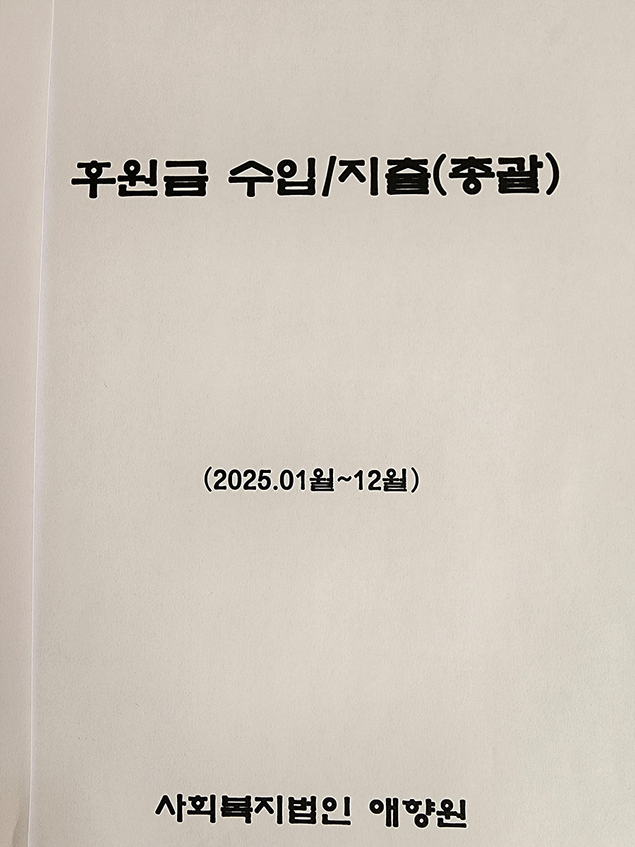 2025년 사회복지법인 애향원 수입,지출,결산서 공고
