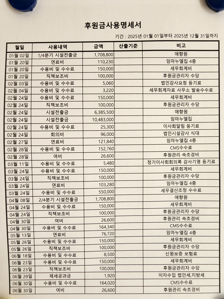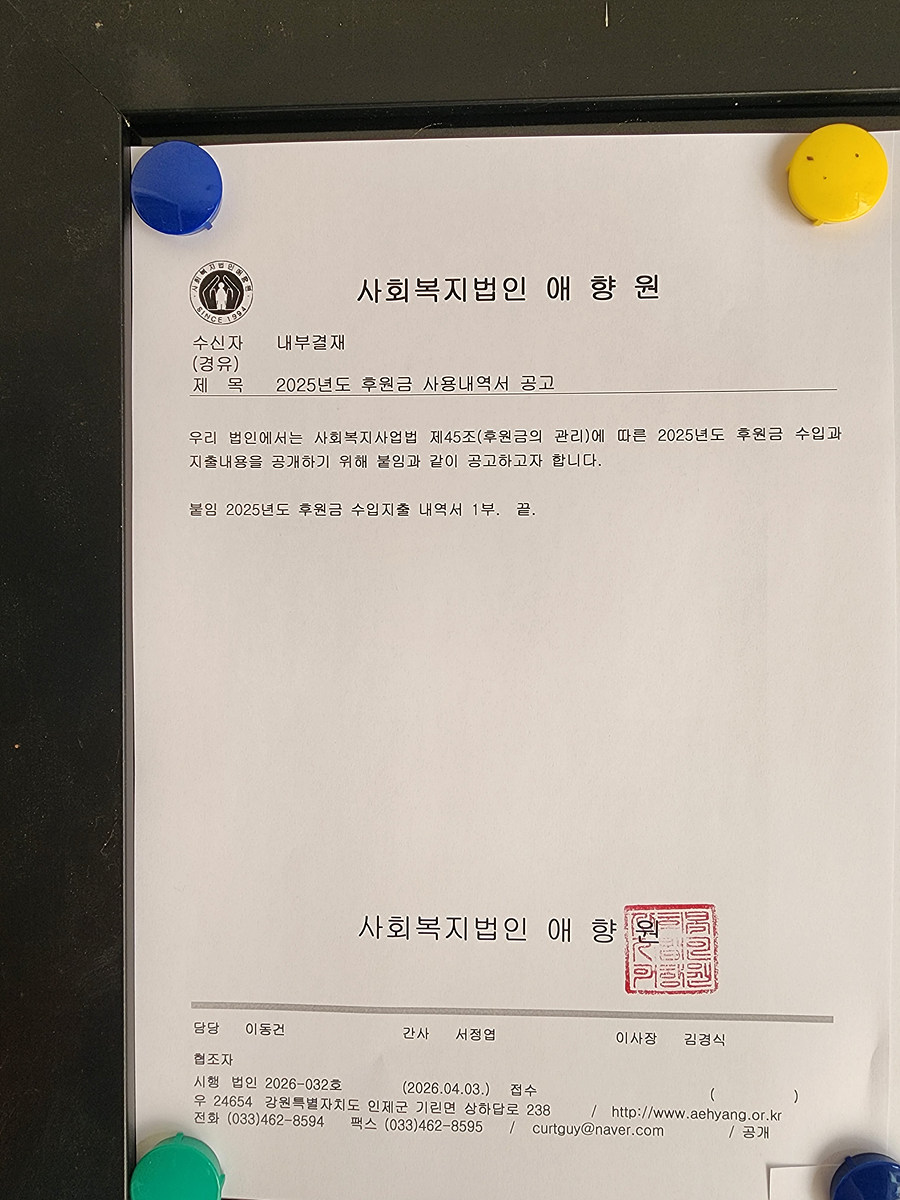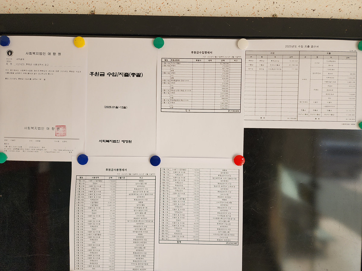 1.2025년 사회복지법인 애향원 수입,지출,결산서 게시판 공고 사진